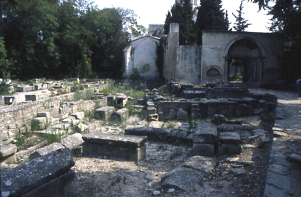 Mais, cest à lépoque paléochrétienne que le cimetière prit une importance majeure avec linhumation du martyr saint Genest et la sépulture des premiers évêques dArles, abrités dans une chapelle bientôt entourée par un grand nombre de tombes pressées sur plusieurs rangs.