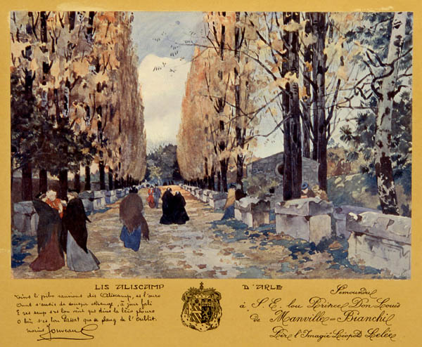 Lallée des Alyscamps qui subsiste aujourdhui a été aménagée par les religieux Minimes au XVIIIe siècle. En 1888, Van Gogh et Gauguin vinrent peindre dans ces romantiques « Champs Elysées » dArles.