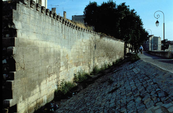 Son rempart est encore visible sur le quai du Rhône, ainsi que les restes de sa porte fortifiée flanquée de deux tours rondes, refaite à la Renaissance.