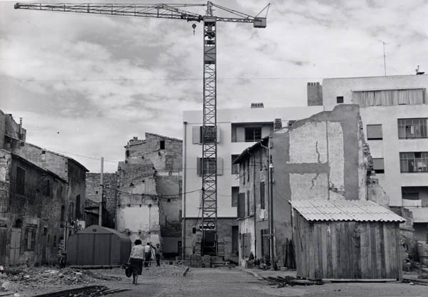 Le nord du quartier, des remparts à la place Voltaire, a beaucoup souffert des bombardements de lété 1944. La reconstruction en fut confiée aux architectes Pierre Vago et Jacques Van Migom.